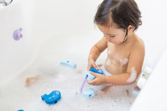 Your kids very first lacing beads! As from 10 months your little ones will be able to play with the large soft foam blocks that float on the water and stick to the side of the tub.