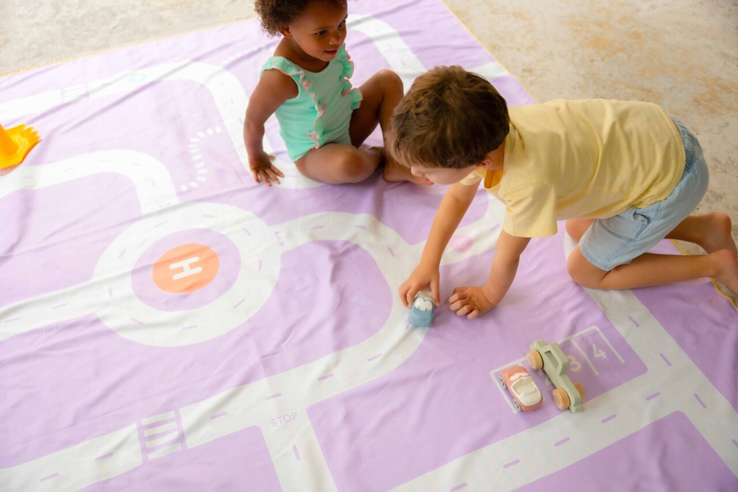 Double the fun with our play towels. This play towel features a unique design and two sides. On the front, there’s a game, and on the back, you’ll find a graphic pattern.