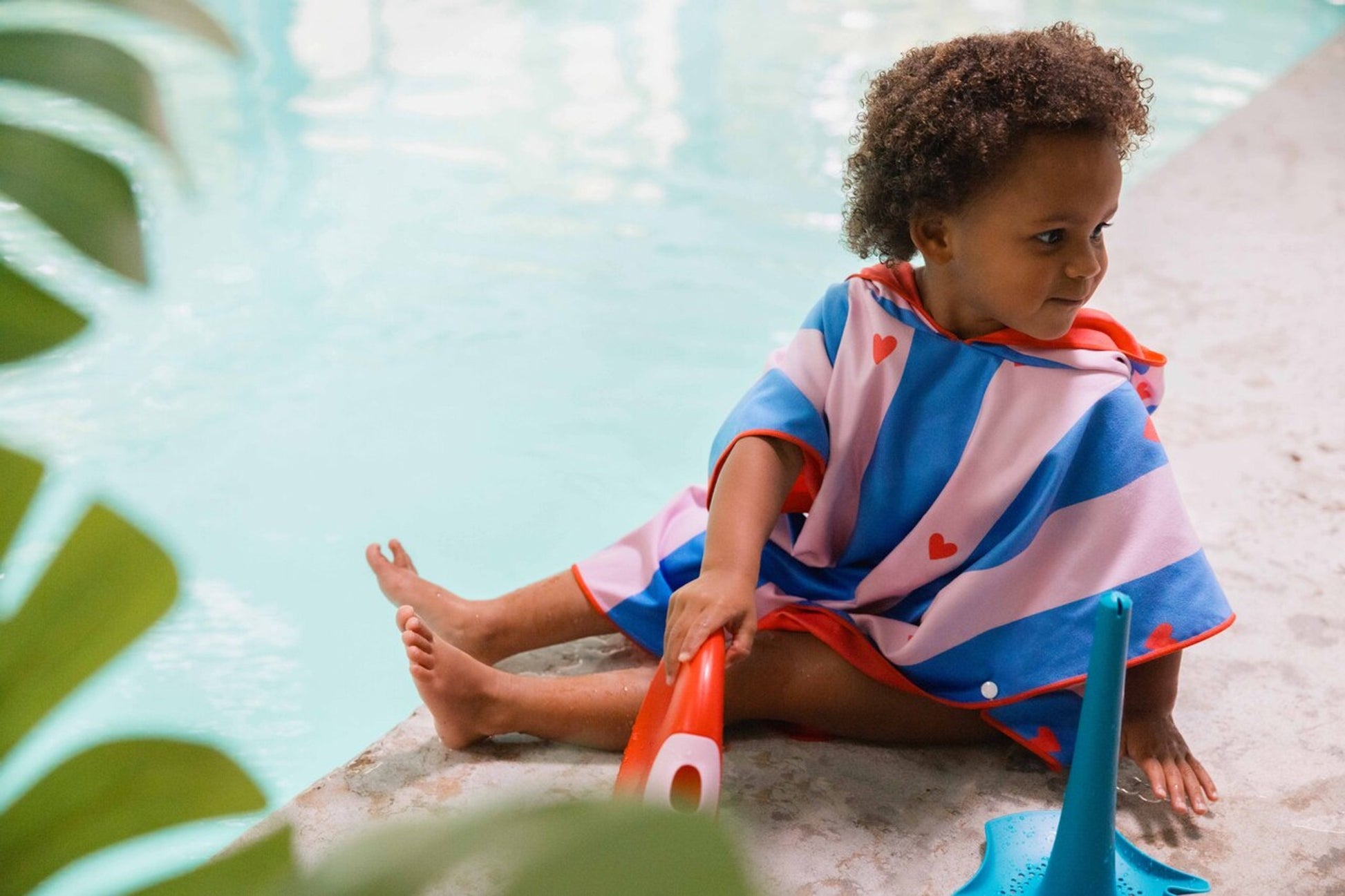 These beach ponchos have on trend designs and colours that are sand resistant and made from 100% microfibre which is quick dry and super compact. For Ages 1-6 years old.